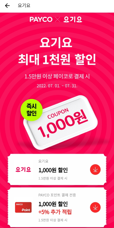 1. 페이코 - 1만5천원 이상 결제시 1천원 할인
