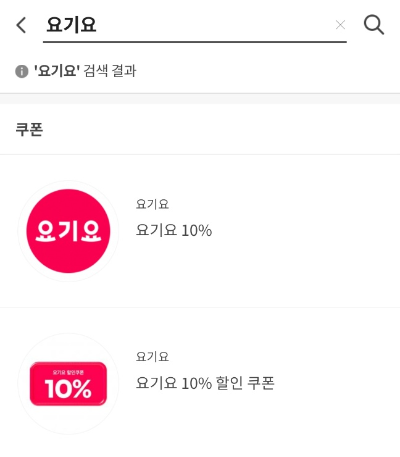 그런데 알고보니 시럽에서 요기요 쿠폰을 검색하면 두개가 나오고