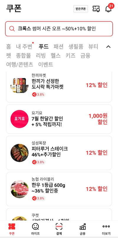 (그리고 이 두개의 쿠폰들은 오케이캐시백 앱에서도 같이 보임)